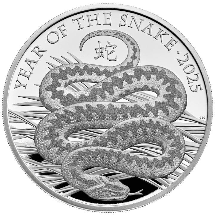 Pièce en argent de Grande-Bretagne " Année du serpent " 2025 (épreuve), 31,1 g. argent pur (épreuve 0,999)