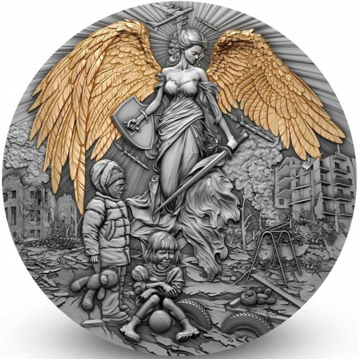 Cette magnifique pièce de 2 once en argent incarne l'image d'un ange gardien - un protecteur céleste qui protège les gens du mal et de la souffrance. Le revers représente un ange muni d'une épée et d'un bouclier, qui protège les enfants du désastre. Le relief impressionnant, la dorure exquise et la finition antique donnent une impression saisissante de profondeur et de lumière. La pièce est émise en édition limitée à 500 exemplaires pour le monde entier et est accompagnée d'un certificat d'authenticité.