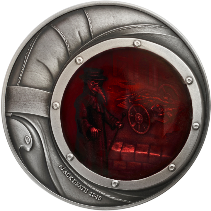 Pièce en argent de Niue " Peste noire - La peste. Tragédies humaines" 2023, 62,2 grammes d'argent pur (épreuve 0,999)