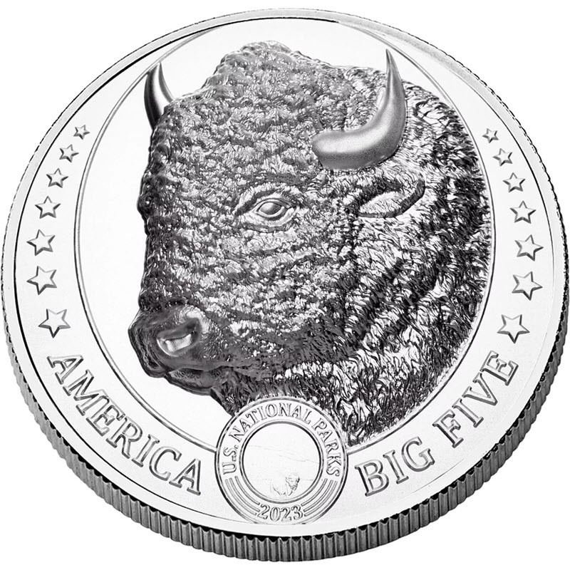 Pièce d'argent Fidji Big Five of America Bison 2023 1 once d'argent pur 0,999