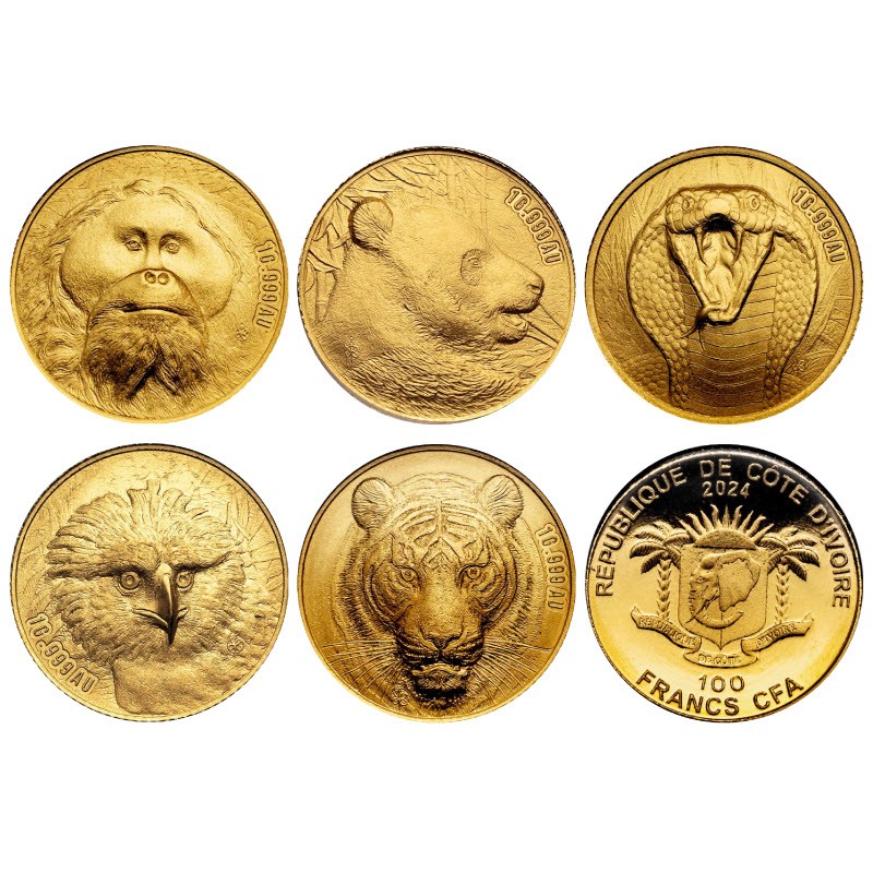 République de Côte d'Ivoire : pièces de collection en or Animaux Asie 2024, (set) 5 g or pur (0,999)