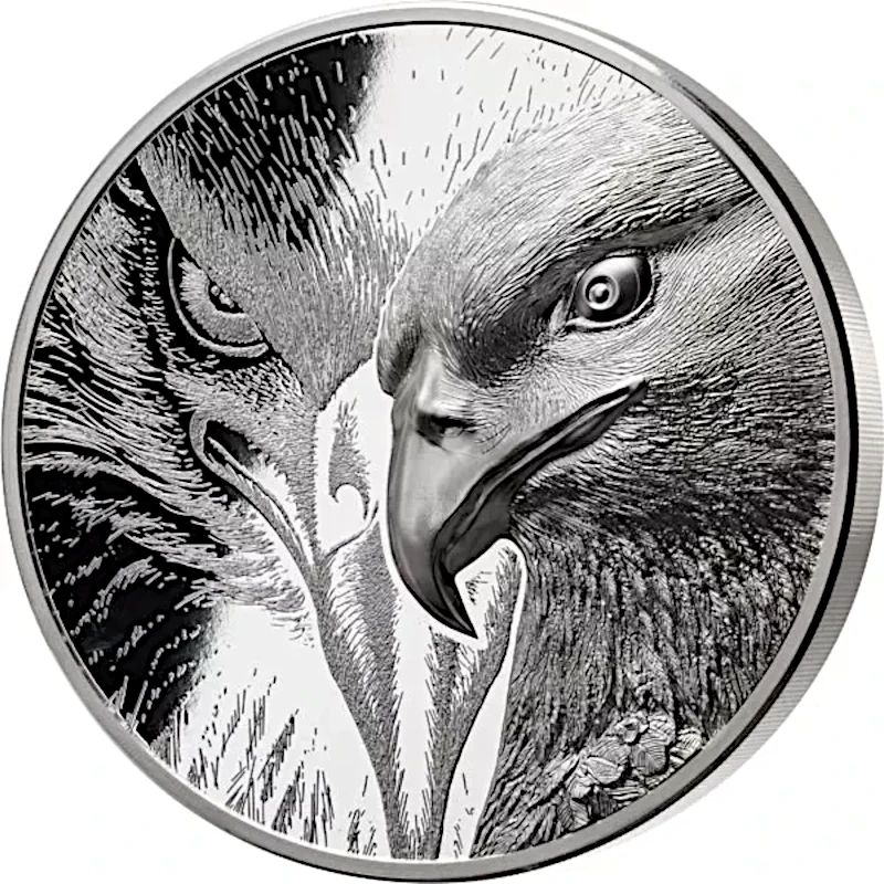 Cette impressionnante pièce d'argent d'un demi-kilogramme a été créée à l'aide de la technologie révolutionnaire Enhanced Smartminting®, ce qui permet d'obtenir un relief extrêmement élevé sur les deux faces. La pièce présente une interprétation tridimensionnelle saisissante d'un aigle. Au revers, l'oiseau est représenté de face et de profil avec une profondeur remarquable, tandis qu'à l'avers, les serres s'élèvent de manière spectaculaire au-dessus de la surface. Frappée en qualité Belle Épreuve, la pièce présente une pureté exceptionnelle, mettant en valeur les détails les plus fins, de la structure des plumes au bec acéré du prédateur. La pièce est présentée dans un coffret et accompagnée d'un certificat d'authenticité. Le tirage est limité à 500 pièces.