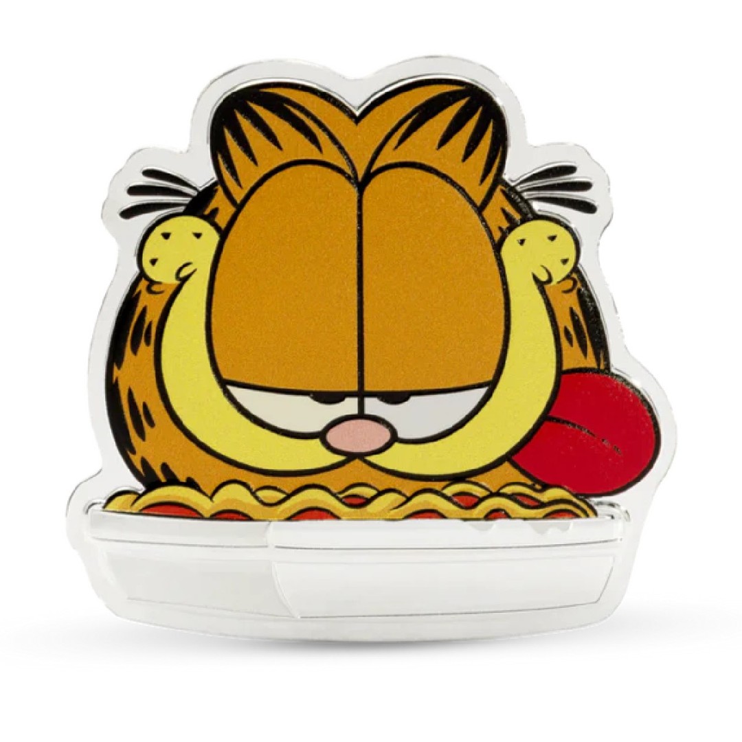 Cette vibrante pièce de collection est dédiée au chat emblématique Garfield - et, bien sûr, à son plat préféré. Émise à l'occasion de la Journée nationale des lasagnes, elle représente Garfield dans son attitude caractéristique - les yeux plissés et la langue tirée - en train de déguster un plateau de lasagnes. La pièce est composée d'une once d'argent sterling pur 0,999, présente une forme et une finition colorée, et est officiellement autorisée par Nickelodeon. Il s'agit de la deuxième pièce de la série Garfield en argent, dont l'édition est limitée à 1 000 exemplaires dans le monde entier. Elle est livrée dans un emballage coloré à thème avec une vitrine.