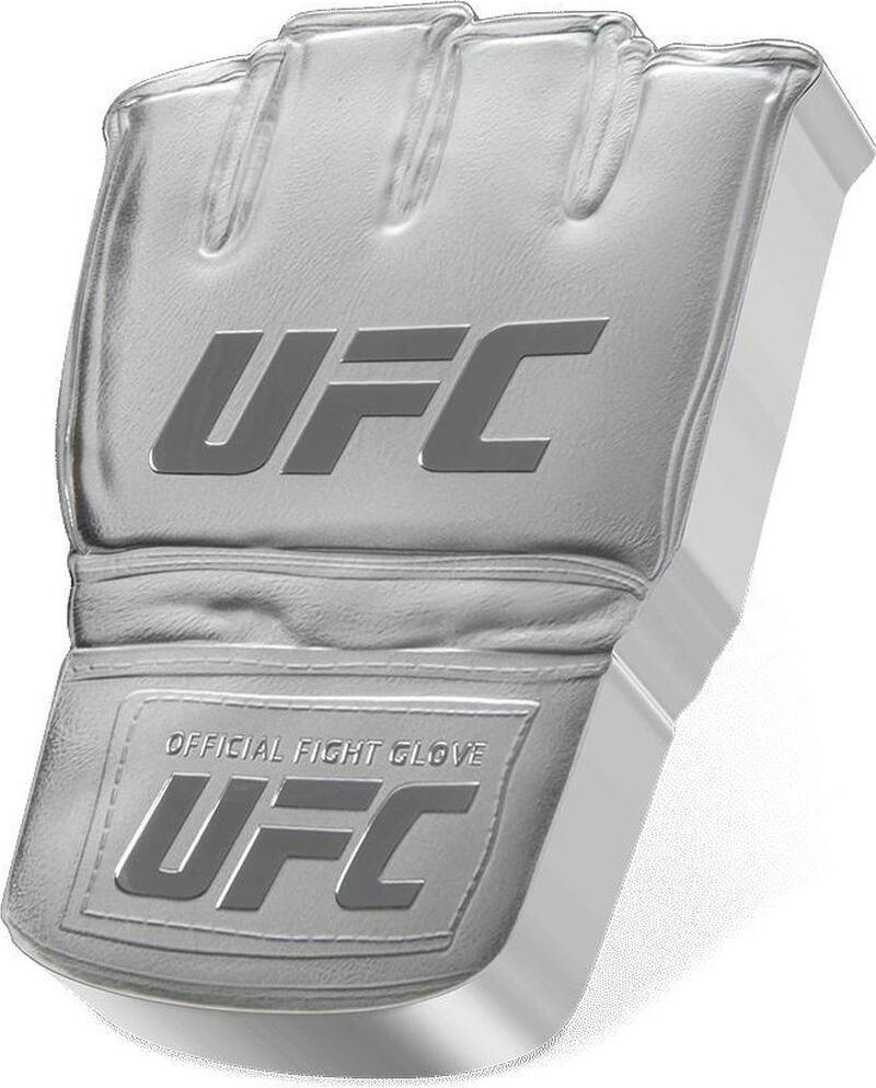 Cette impressionnante pièce d'argent de 3 Once est conçue en forme du gant emblématique de l'UFC, symbole de force, d'histoire et d'évolution continue du sport de combat. La pièce est frappée en Belle Épreuve et présente un logo UFC® en miroir sur un fond texturé mat. Son design unique et son tirage limité à 1 000 pièces en font un objet de collection très convoité. Chaque pièce est livrée dans un emballage élégant, avec un certificat d'authenticité et un numéro individuel. La pièce a cours légal et constitue une licence officielle de l'UFC.