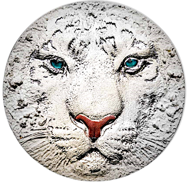Cette impressionnante pièce de 3 once en argent marque le lancement de la série White Hunters et est dédiée au tigre blanc. La pièce se caractérise par un haut relief saisissant, une finition antique et un effet glace/neige innovant qui crée l'illusion de cristaux de glace à la surface. Le revers représente un tigre blanc aux yeux bleus expressifs et au nez rose, reflétant la beauté et la puissance de ce prédateur rare. La pièce est présentée dans un élégant coffret et accompagnée d'un certificat d'authenticité. Le tirage est limité à 369 pièces pour le monde entier.