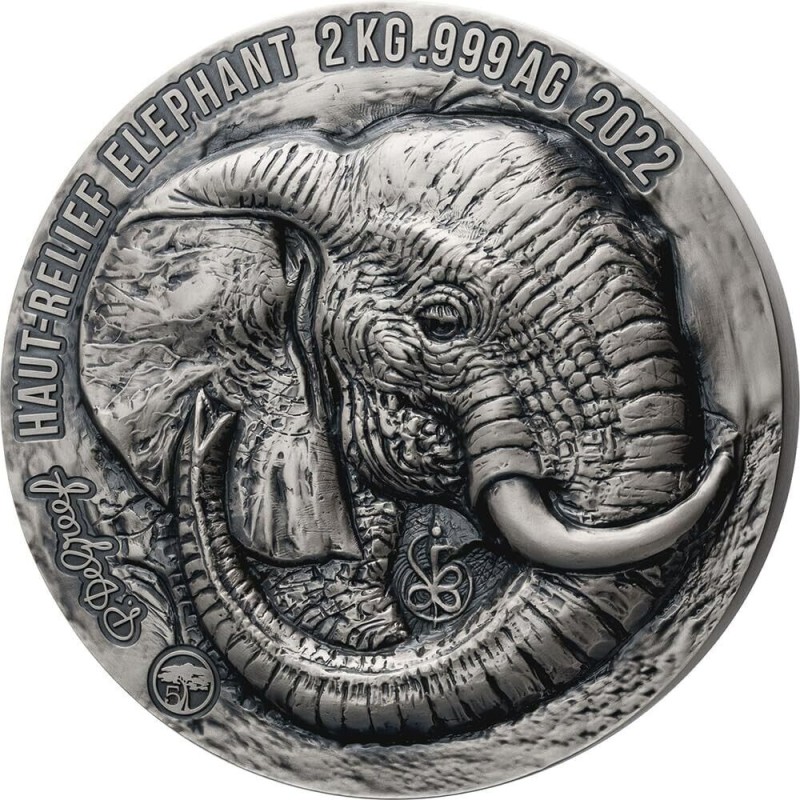 République de Côte d'Ivoire : pièce de collection en argent Big Five. Éléphant 2022, 2000 g argent pur (0,999)