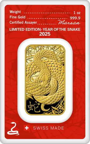 Suisse : Argor-Heraeus lingot d'or de collection Année du serpent 2025, 31,1 g d'or pur (0,9999)