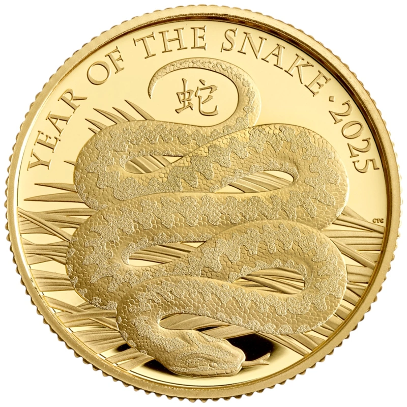 Royaume-Uni Pièce d'or Année du serpent 2025 Belle Épreuve 1/4 once
