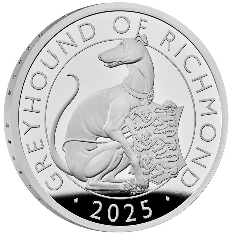 Pièce en argent du Royaume-Uni The Tudor Beasts White Greyhound of Richmond 2025 Belle Épreuve 1 once d'argent pur 0,999
